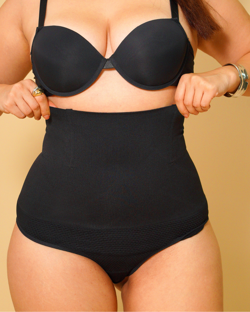 Der extra hohe Bund glättet Bauch und Taille und schafft sofort eine definiertere Silhouette – unsichtbar unter jeder Kleidung.