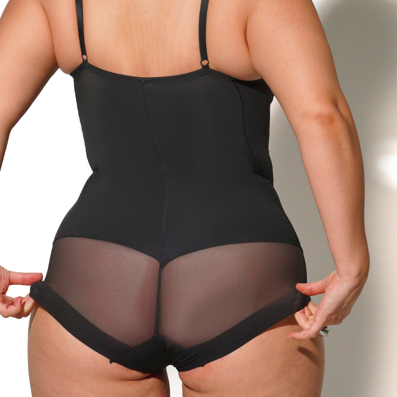 Atmungsaktive, elastische Mesh-Einsätze liften den Po aus jedem Winkel und sorgen für eine runde, geformte Rückansicht — ganz natürlich, ganz bequem.